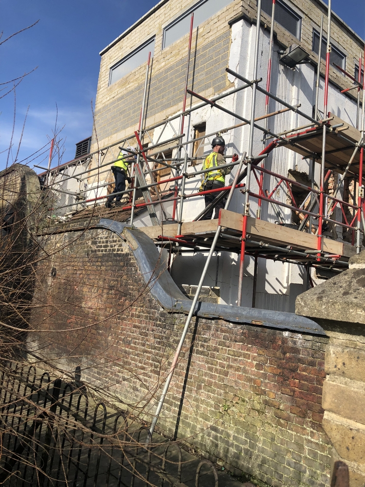 Structural Modifications: To facilitate the chapel's extension, contractors undertook significant work, captured in images three and four:
