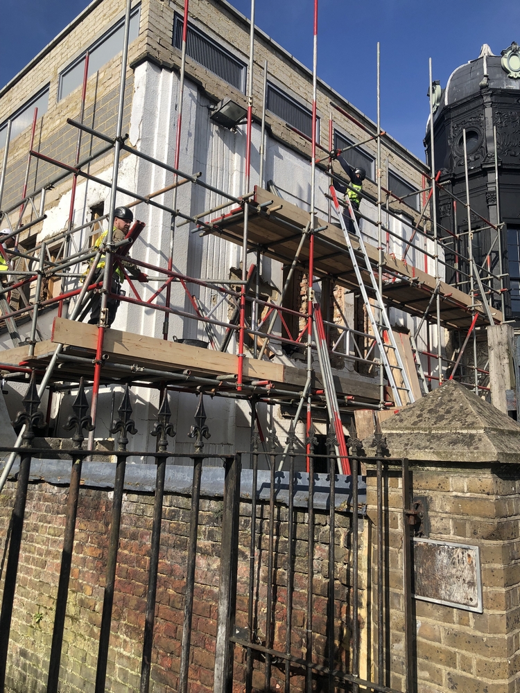 Exterior Work Commencement: As interior renovations progress, scaffolding has been erected to initiate exterior work, as seen in images ten and eleven.