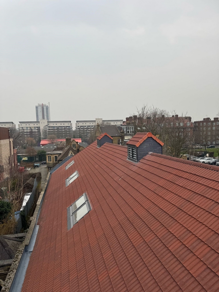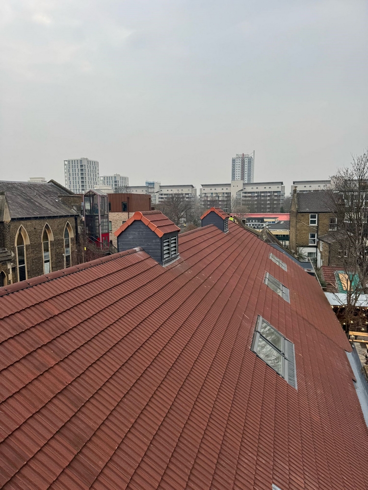 Roof Enhancements: Images eight and nine highlight the completed roof, featuring six newly installed skylights to enhance natural lighting.